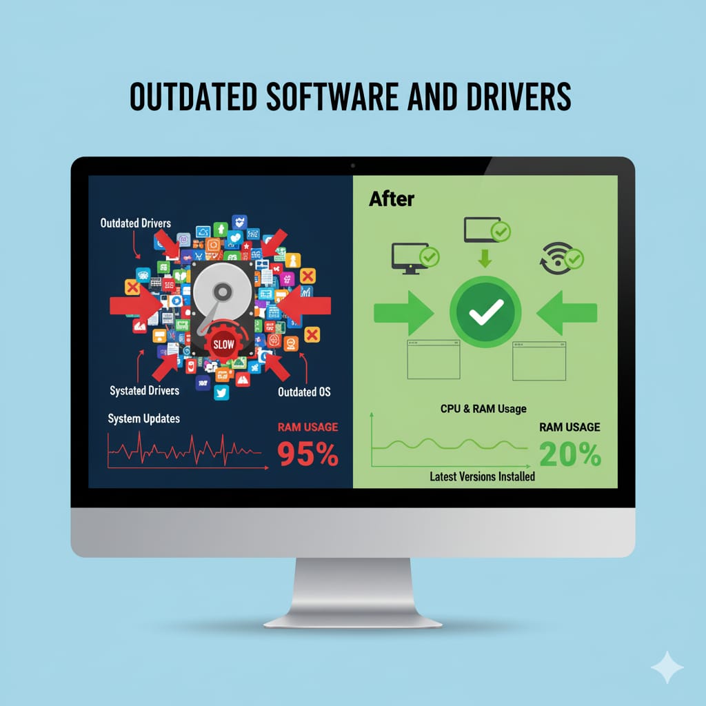 Old software, including your operating system, applications, and device drivers, can lead to performance issues and security vulnerabilities. Updates often include performance enhancements and bug fixes.